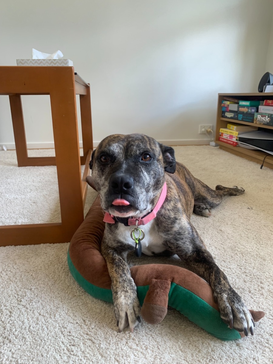 Marlie is the perfect mid sized (20kg) brindle beauty and certified cuddle machine who’s on the hunt for her forever family! Whether she’s sitting like a human to watch TV 📺, trotting around Bunnings like she owns the place 🏗️, or soaking up all the love and attention she can get, Marlie is happiest when she’s with her people.