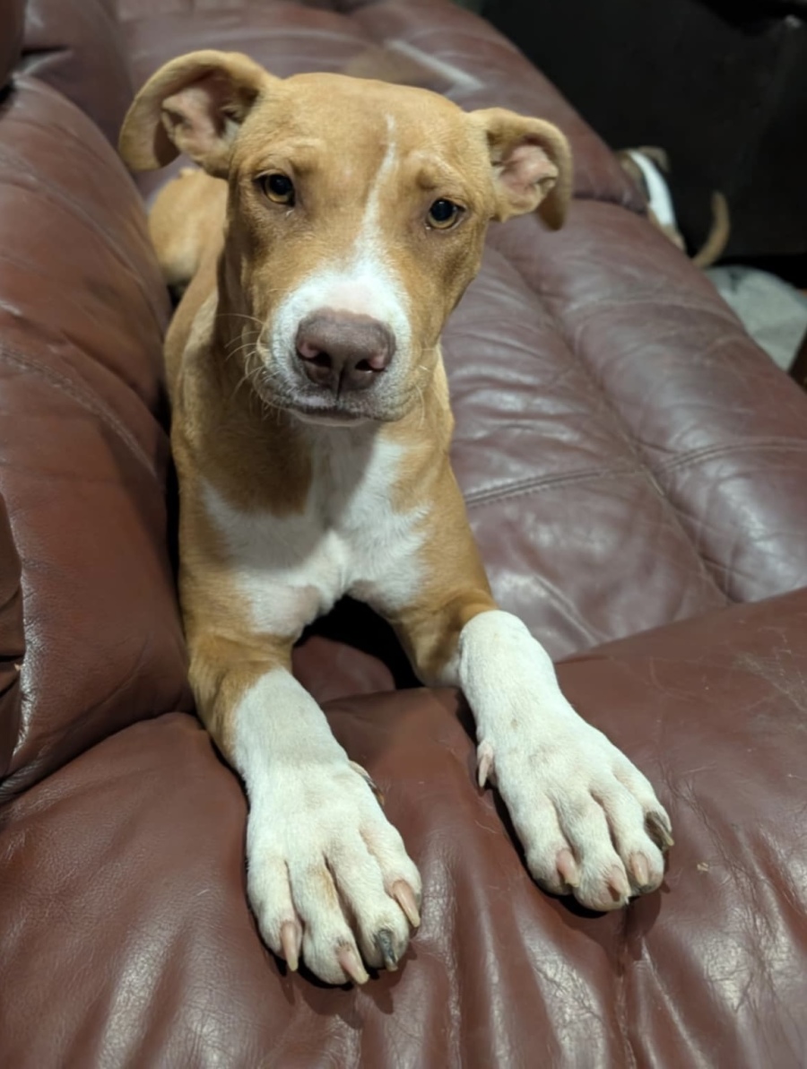 A medium sized staffy mixture, Peach is the perfect mix of cuddly and affectionate and is looking for an inclusive home.