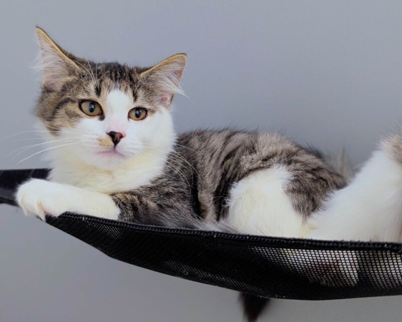 Hi there, I'm Teeter! I'm a tiny, 4-month-old Domestic Short Hair kitten with a whole lot of personality packed into one little fur-ball. I've got a high activity level, which means I love to play, explore, and get into all sorts of harmless mischief! I'm still learning about the world, and I'm eager to find a family that can help me grow into a strong, smart cat. I'm a female cutie who's been told I'm quite the charmer. I love to purr and nuzzle, and I have a knack for finding the coziest spots to curl up in. Despite my playful nature, I'm also a big fan of snuggles and naps. Once we get to know each other, I promise there's no better companion than me. As for kids, I don't have any known issues. I'm a pretty adaptable kitten who's ready to fit into any loving home. I'm looking forward to meeting you and starting our adventure together. So, what do you say, can I be your purr-fect new friend?
