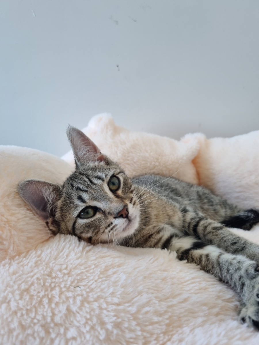 Meet Ace, your next purrfect companion full of charm and cheekiness! This confident little fellow is not just your ordinary cat; he's an expert "biscuit maker," kneading with enthusiasm to show his love. Ace's playful energy is second to none, and his zest for life is evident in the way he dashes around the house, always ready for the next adventure.