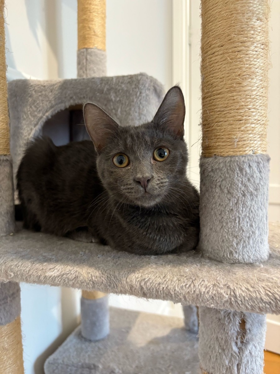 Monty is an affectionate and playful little kitten with a heart full of love. He gets along wonderfully with other cats and is slowly adjusting to life with a large breed dog đ.