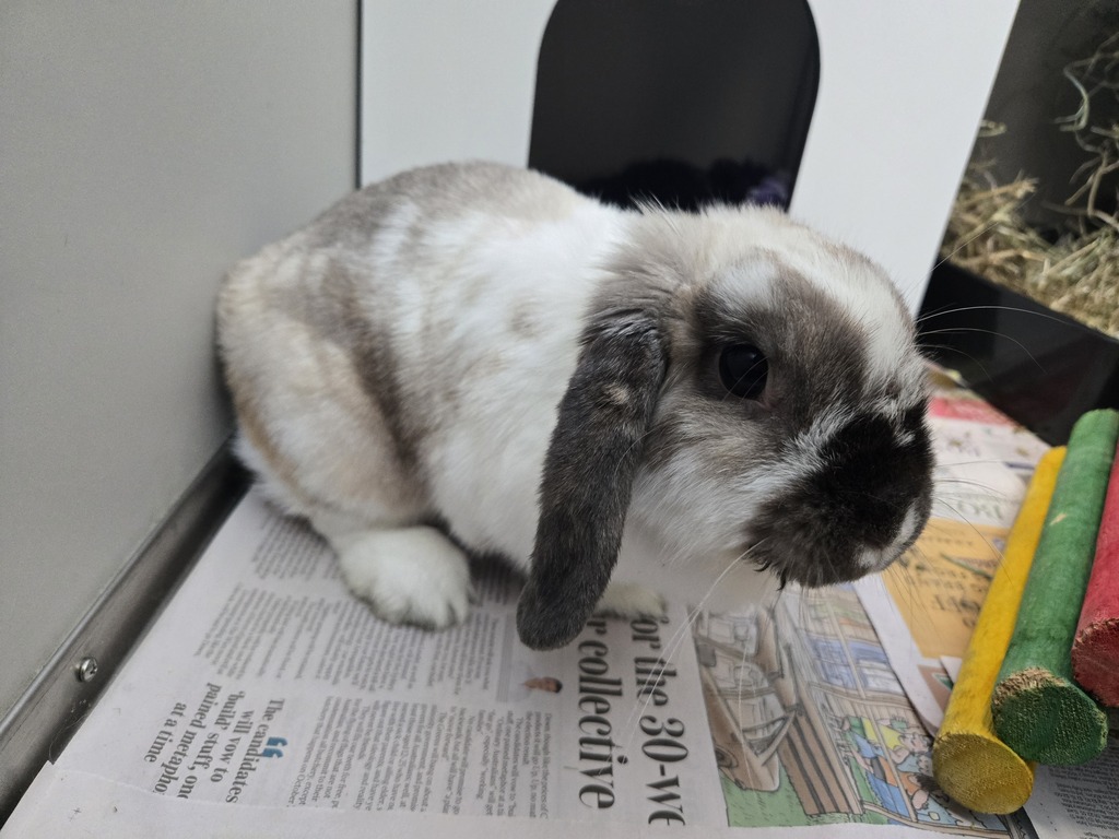 She may like to live with a similar sized de-sexed rabbit of the opposite sex, pending a meet and greet.