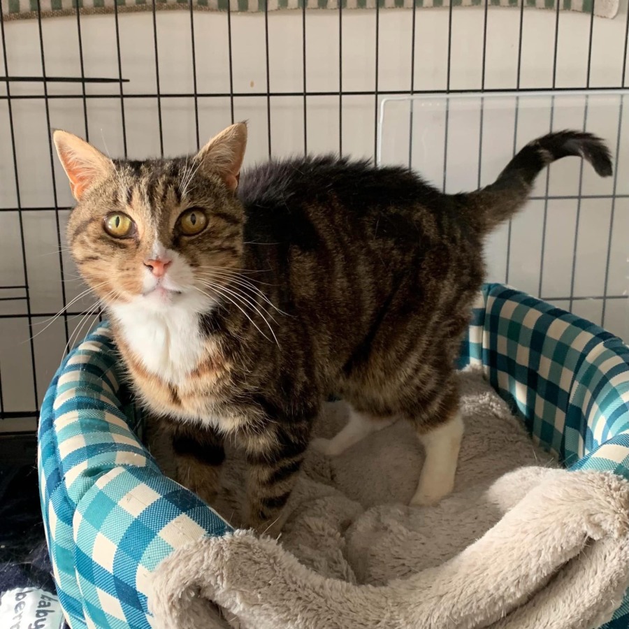 After a month of TLC, Pigeon is all ready to find her forever home. Her best days are spent sleeping in the sun, curling up in her comfy bed and cheerfully eating her meals. She hasn’t shown an awful lot of interest in playing with toys; her favourite activity is hanging out with people. She would love nothing more than a nice calm home to fit into, with someone to offer her lots of pats and kind words. She’ll make an excellent couch companion and would probably love sleeping in bed if given the opportunity to do so.
