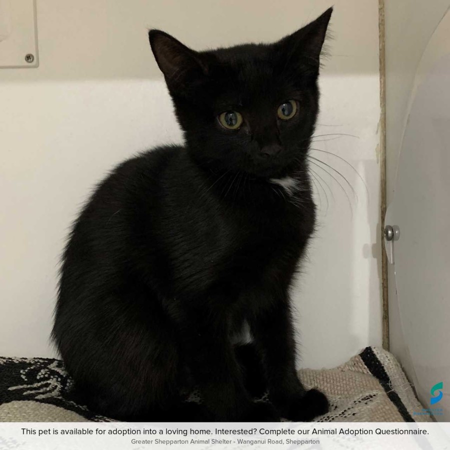 Mochi is a sweet Black, Domestic Short Hair female kitten looking for her forever home! She is super sweet and friendly and has loads of love to give!