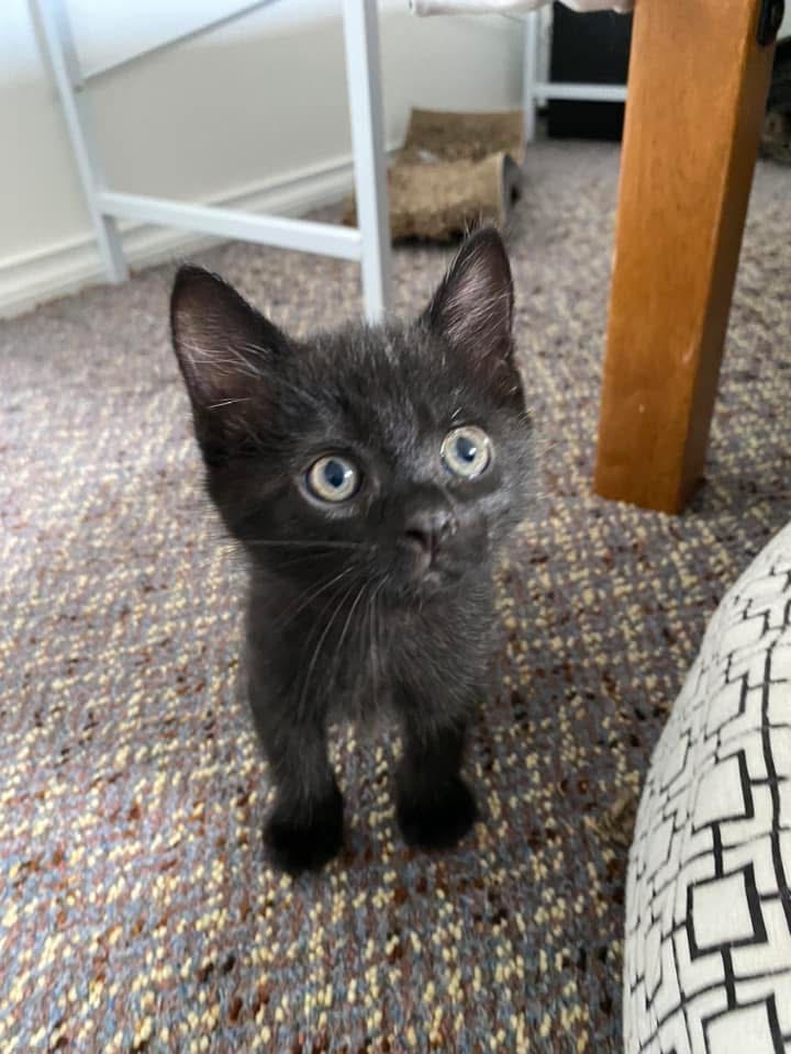 Hobble arrived to us alongside his siblings originally from a colony someone took home, he had what looked to be an old traumatic amputation of the hind foot and tail tip, we amputated the rest of the leg and now he is a happy pain free kitten. Sweet Hobble has not let having 3 legs hold him back, he keeps up with the rest of his siblings very well and will quite happily chase them down. Hobble is very affectionate, playful and a bit of a chatter box, chatting your ear off as soon as you walk in the door. This beautiful boy will fit in well in any home, he has loved the company of other cats and dogs. Come and meet him at our Longford Centre.
