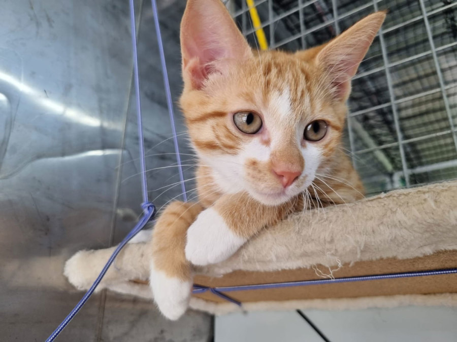Brennan is an affectionate and independent ginger and white kitten with a boundless sense of curiosity. At approximately 12 weeks old, he is eager to explore his surroundings and has started giving head boops to those he meets! Brennan enjoys playing with toys and interacting with the other cats and kittens at Sweet Pea, making him a delightful companion with a playful spirit.