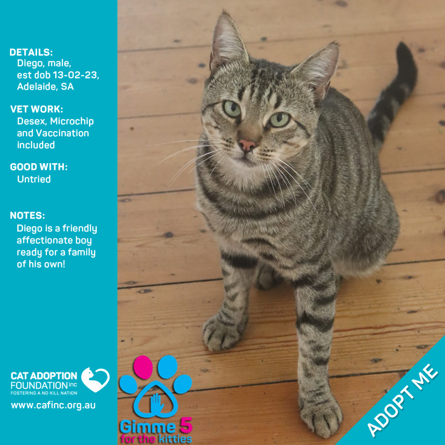 Donate to Diego Only $50 Limited Time! at Cat Adoption Foundation Incorporated via Shout