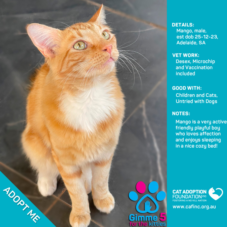 Donate to Mango Only $50 Limited Time! at Cat Adoption Foundation Incorporated via Shout