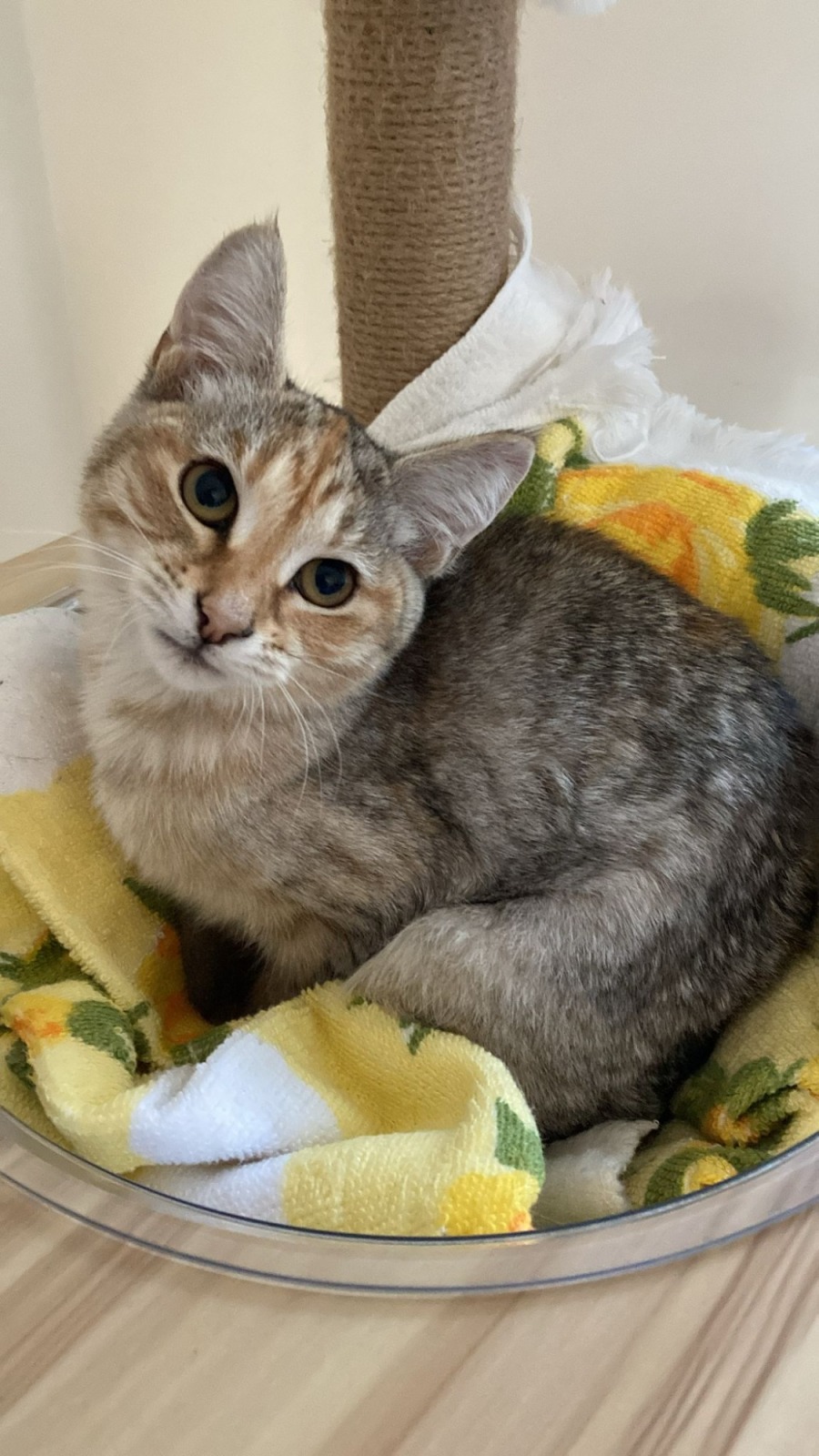 Meet Gnocchi, a delicate and enchanting feline who embodies the charm of subtle elegance. Her shy and reserved nature might take a little time to warm up to her new surroundings, but once she feels safe and secure, she blossoms into an affectionate and delightful companion who steals hearts with ease.