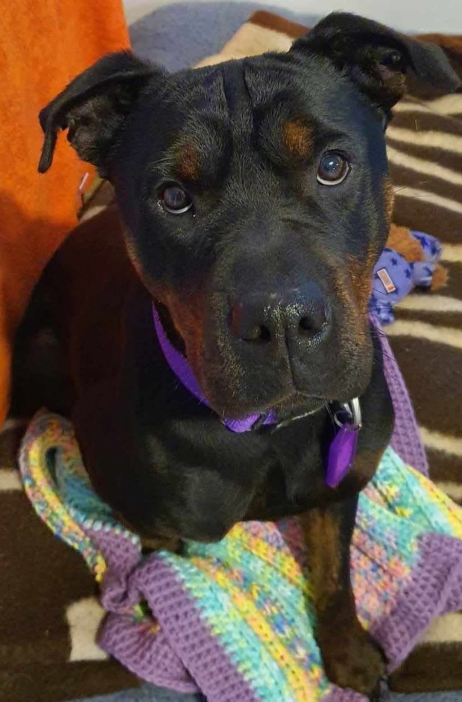 Meet Umbreon, a beautiful and loving female Rottweiler mix with a heart as big as her paws! This playful, affectionate girl is as friendly as they come, especially with other dogs. Umbreon thrives on companionship and loves to make new furry friends at every opportunity.