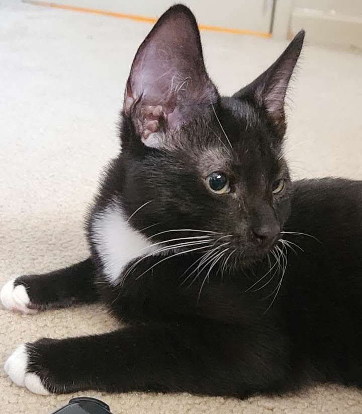 Beanie is aptly named since he's so full of beans! This happy little character with the slightly oversized ears is super friendly and (when he does stop) also a very loving kitten who enjoys a good lap cuddle and to keep you company, especially if you're on the computer!