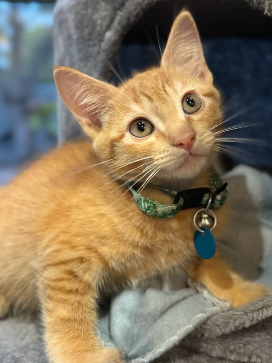 Meet Pumpkin, the adorable ginger domestic cat who's ready to steal your heart with his playful antics and irresistible charm. As a young kitten, just 8 weeks old when he was brought to us, Pumpkin is full of curiosity and always eager to explore the world around him. His fluffy ginger coat and bright eyes add to his undeniable cuteness, making Pumpkin one irresistible kitty.