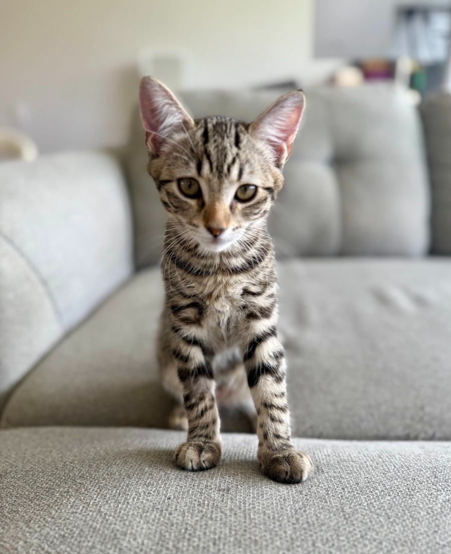 Luigi is a super friendly and playful kitten who’s ready to find his forever home! Like all his siblings, he’s full of energy and loves playing with any toy he can get his paws on. But he’s also incredibly sweet and affectionate. He loves being around people and will happily follow you from room to room just to keep you company. He’s great with visitors and would do well in a home with young kids, making him the perfect family companion.