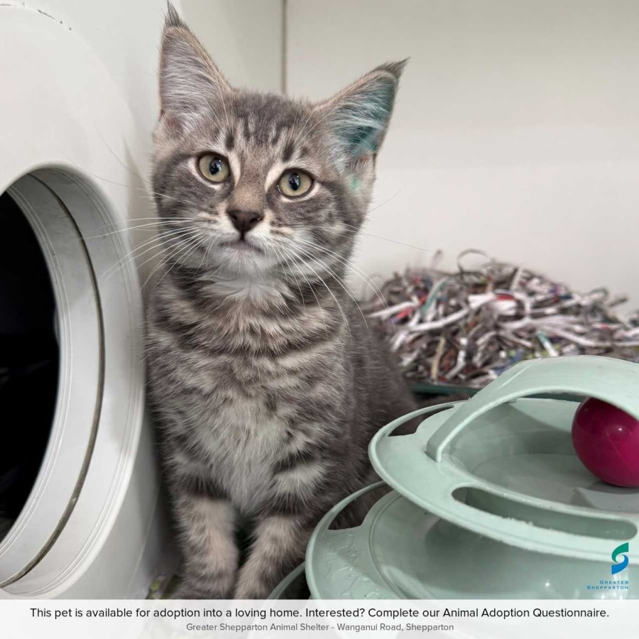 Ron is a lovable 3-month-old Grey Tabby Domestic Shorthair male kitten on the lookout for his forever home! He’s as sweet and friendly as can be, with a heart full of love to share. This little guy is ready to bring joy, playfulness, and cuddles into your life, whether he’s chasing toys or snuggling up for some cozy downtime.