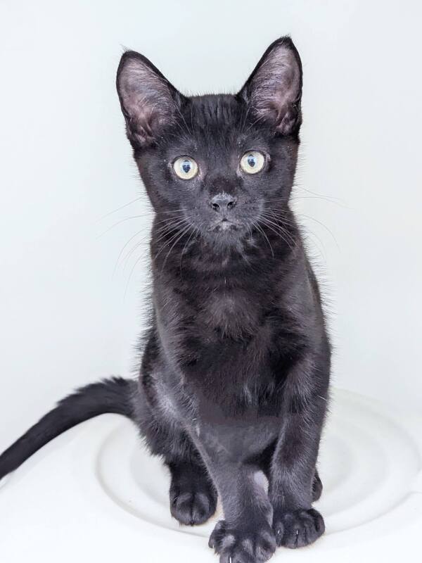 Hello there, my name is Boots! I'm a 2-month-old female Domestic Short Hair kitten with lots of energy and playfulness to share. I have a silky smooth coat that's perfect for petting and I'm ready to explore the world and all the fun it has to offer. I'm great with people of all ages, so no need to worry about any child-related issues. I just love company and can't wait to find my forever family. I promise to shower you with purrs, head-bops, and lots of love. I can't wait to meet you and start our adventures together. See you soon, future best friend!