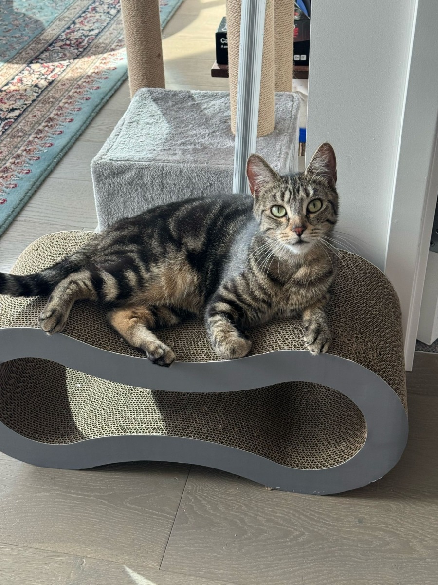 Although she might not be a lap cat just yet, Gracie's energy and inquisitiveness more than make up for it. With time and patience, she may just learn to settle down by your side. It's a simple trade-off for a cat whose presence brings endless joy and entertainment.