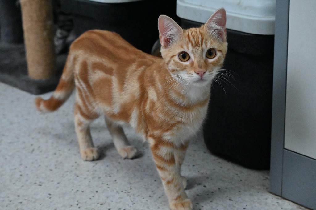 Pappardelle is a 6-month-old ginger kitten with a heart as warm as his fur. Found under a building with his siblings, he started off shy, but every day he’s growing braver and more playful. With a little patience and a lot of love, he’s discovering just how fun life can be—chasing toys, wrestling with his siblings, and exploring his surroundings with curiosity.