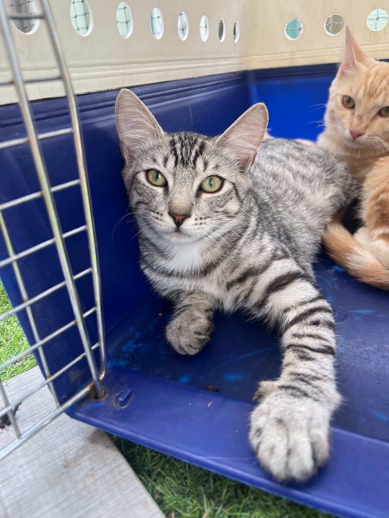 Gnocchi is a 6-month-old grey tabby with a heart as soft as his fur. Found under a building with his siblings, he’s still learning that the world isn’t so scary. Shy at first, Gnocchi is looking for a patient and loving home that will give him the time he needs to come out of his shell.