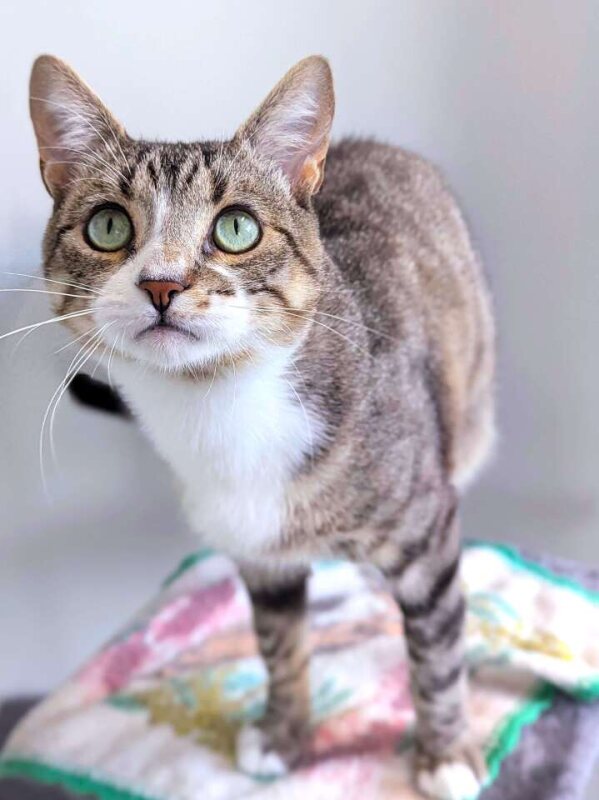 Hello there, my name is Binks! I'm a 3-year-old male Domestic Short Hair cat with a medium level of playfulness. I'm just the right mix of energetic and relaxed. I love to play with my favorite toys, but I also enjoy lounging around and watching the world go by. I don't have any known issues with children, so I could be a great match for a family in need of a furry friend! I'm a pretty laid back guy who can be a bit reserved at first, but once I get to know you, I'm all purrs and head bumps. I have a shiny, short coat that's perfect for petting. I'm a fuss-free feline that's easy to care for and even easier to love. If you're looking for a sweet and sociable kitty who will bring warmth to your home, look no further than me, Binks. I promise to be your loyal companion and bring joy to every day. Let's meet and see if we're a purr-fect match!