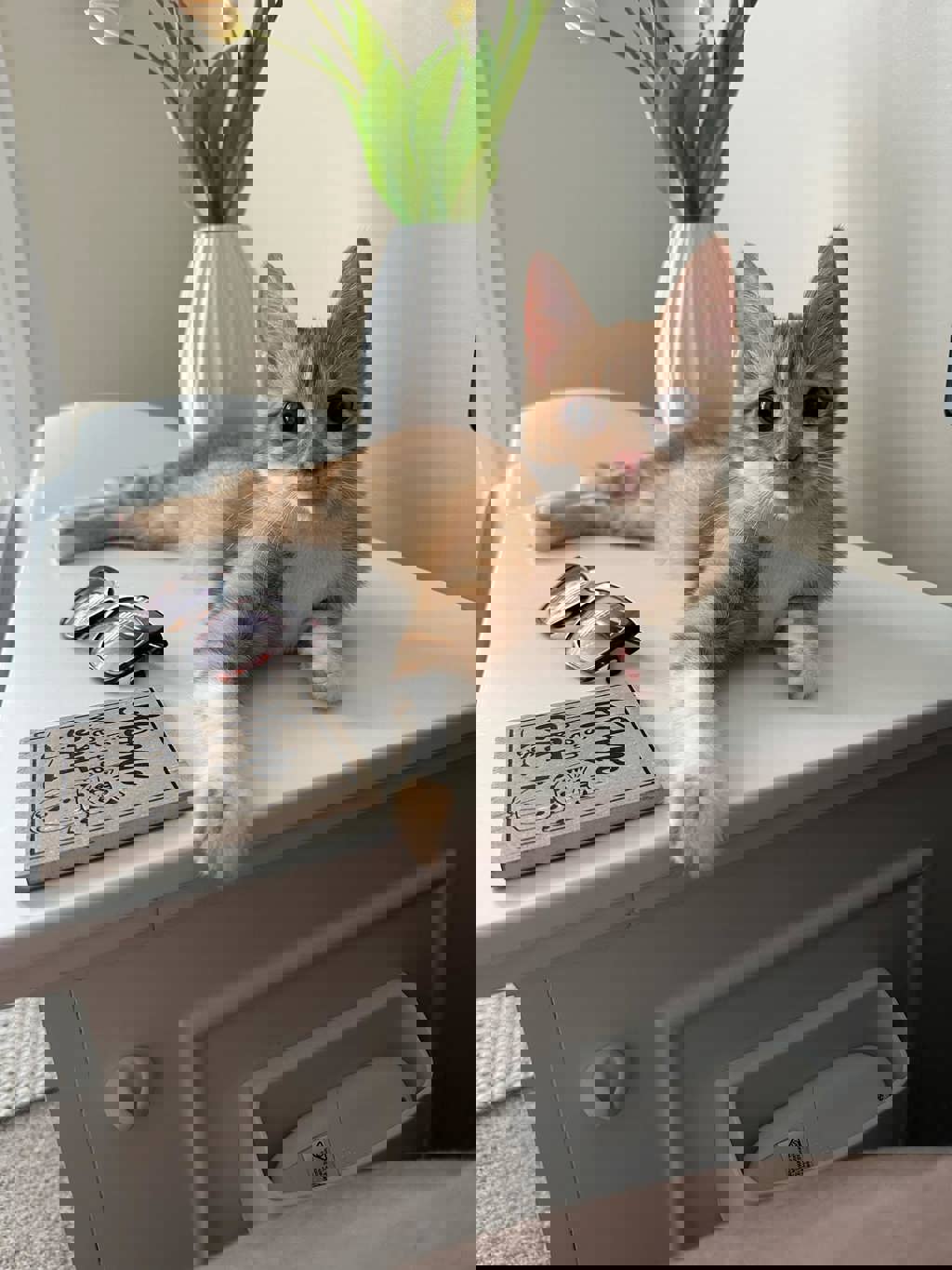 Rory is a playful, confident, and social kitten who is always ready for fun! Whether she's zooming around the house, darting through cat tunnels, or scaling her cat tower like a little acrobat, Rory brings endless entertainment and energy.