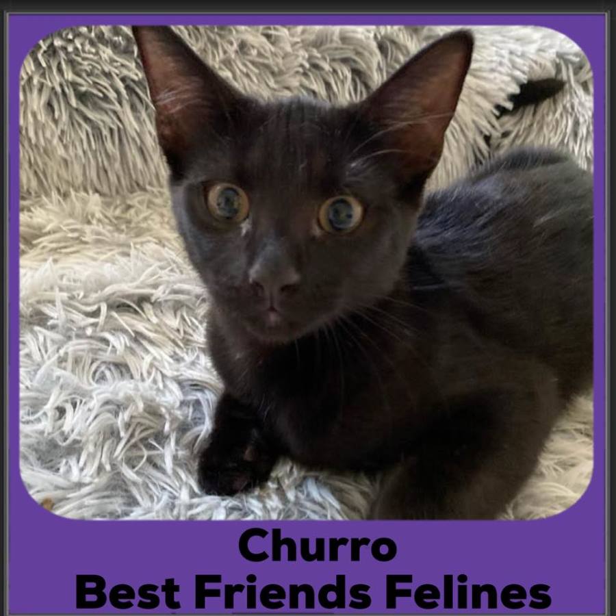Churro is super sweet, has amazingly soft fur, and has a wonderful disposition – just the right mix of adventurous and cuddly. To meet Churro is to be smitten with her. Churro has a more independent streak than her sisters, which would suit those in busy households who enjoy coming home to a kitten who, without fail, trots up to greet them. Churro is also very gentle, which indicates that a range of ages would enjoy her company.