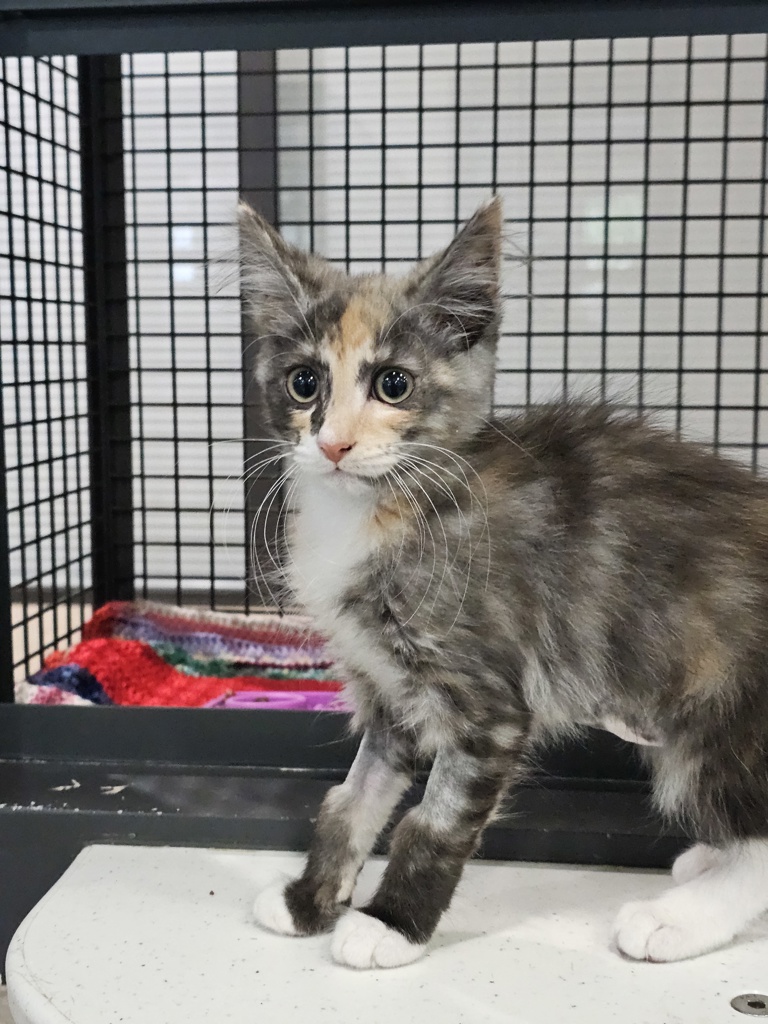 Hey there, I'm Elfie. I'm a friendly and affectionate kitten who would suit most homes! My playful paws are always ready to pounce on anything that moves. I love playing with wand toys and mysterious shadows on the wall! When I'm finished playing, I love nothing more than finding a warm lap to curl up in.