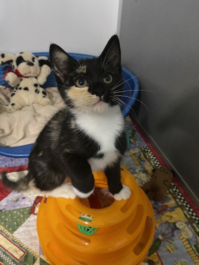 Meet Gretal, the delightful 11-week-old kitten who is ready to steal your heart! This little bundle of joy is as confident as they come-nothing rattles her! She's confident, meaning she's totally unfazed by the world around her, and she's always up for some fun and adventure. Gretal is incredibly social and loves being around people and her brothers, always ready to shower you with affection. And if you love a chatty kitty, she's your gal-Gretal loves to talk and is never shy about making her voice heard. If you're looking for a sweet, spirited kitten to bring joy, laughter, and endless cuddles into your home, Gretal is the perfect match! Ready to make your life a little more purrfect? Come meet Gretal today!