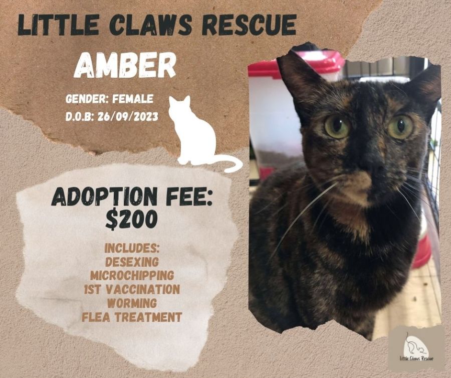 Meet Amber, a delightful little feline with a gentle and endearing personality. While she may prefer the company of humans, Amber's heart is as big as her curiosity. As an expert in creating her own array of adventures, she finds joy in exploring every corner of her environment, making sure no nook or cranny goes unnoticed. But when she's not discovering the mysteries of her world, Amber enjoys a leisurely lifestyle, indulging in cozy naps and lounging in sunlit spots around the house.