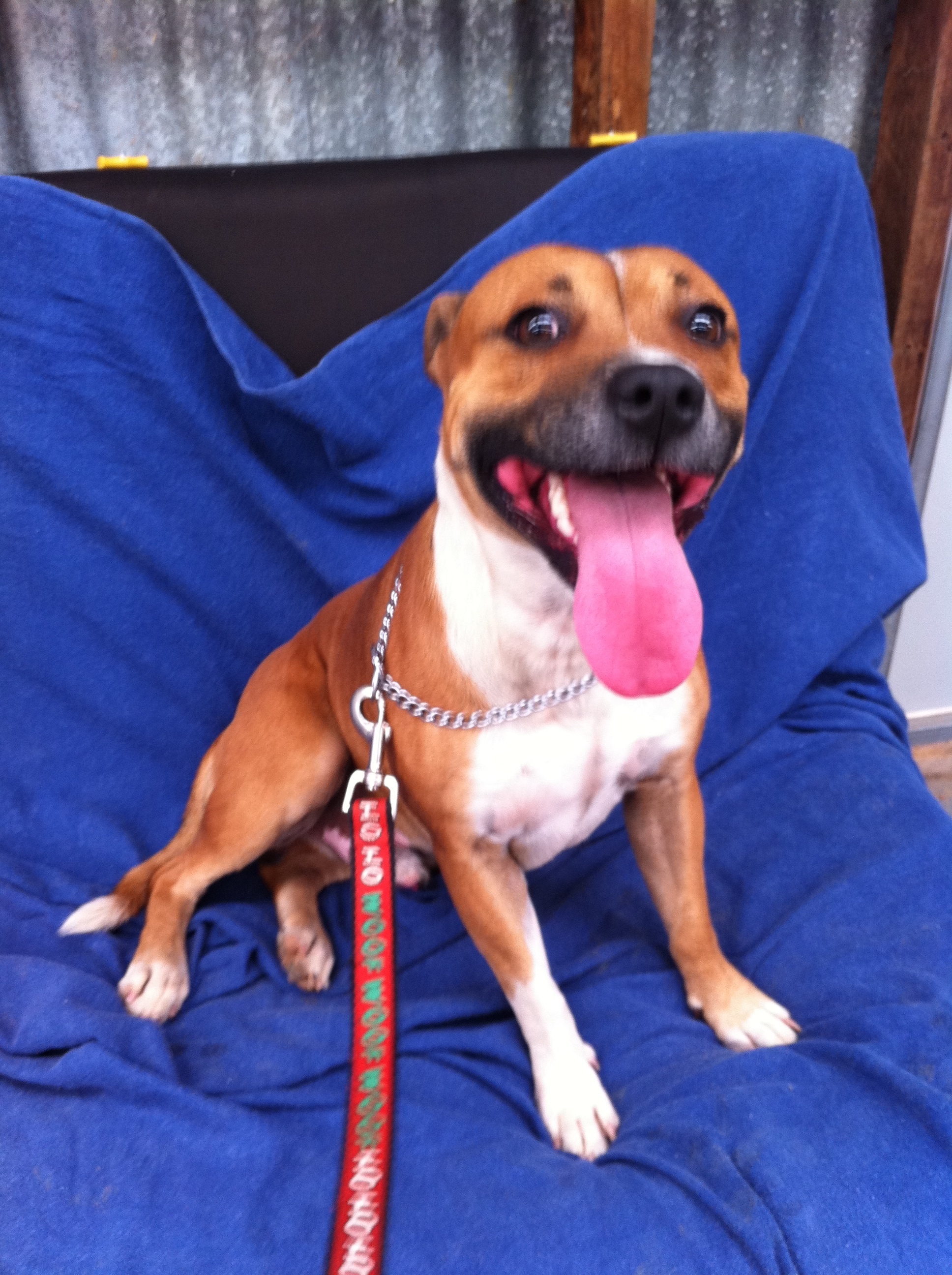 Nugget is a typical staffy and if you love your staffy’s then you are just going to love him. He is a great little dog, with the typical staffy temperament and the cutest grin. He is great around the other dogs, fantastic with the kids but i wouldn’t trust him as far as i could throw him with the cat so please no cats! nugget was found wondering a country road and unfortunately for someone he was never claimed. This dog has previously been well taken care of and loved as he is such a good boy. If you think that you are ready to take on this little champion then please give us a call asap