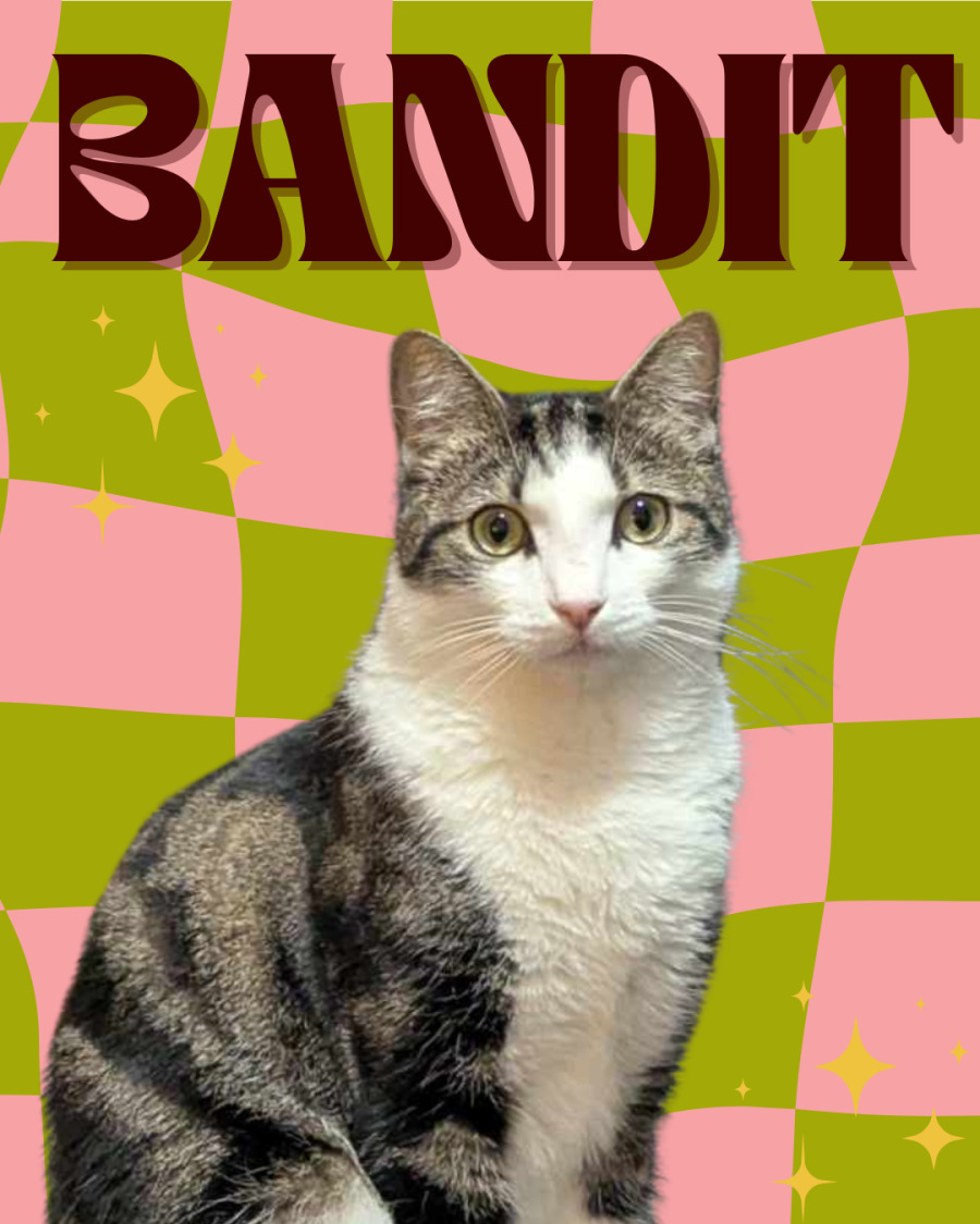Bandit's ideal bff leads an active lifestyle, but enjoys a relaxing day on the couch, probably watching birds out the window or some landscaping YouTube. He loves to chat, so please meow back.