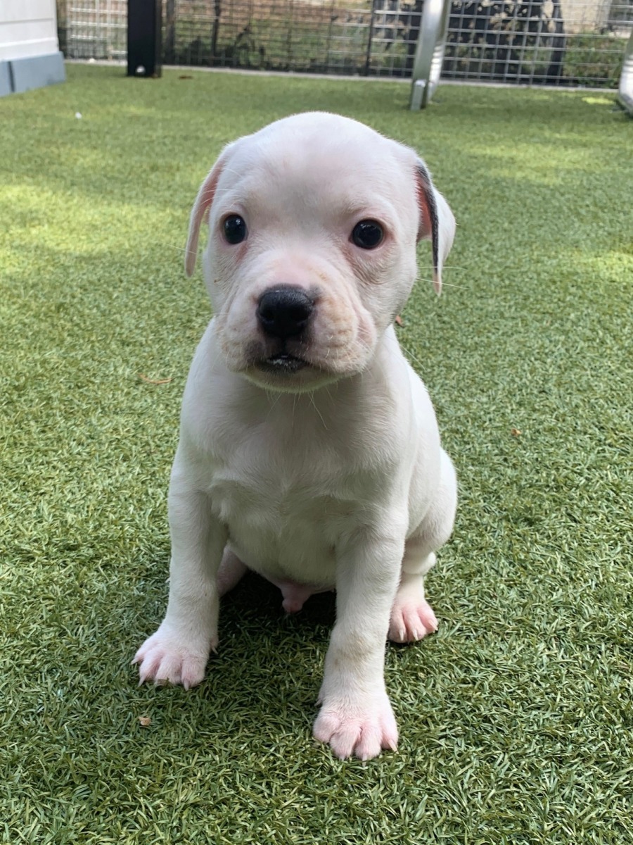 Kendrick is at the perfect age to bond with a loving family, embracing all the training, socialization, and adventures that come his way. His zest for life is sure to keep you smiling, as he showers everyone around him with affection and boundless energy. Whether it's a game of fetch in the backyard or a cozy nap beside you, Kendrick's presence is undoubtedly heartwarming. Embrace the opportunity to bring this beautiful English Staffy puppy into your life, and you'll gain a loyal friend for years to come.