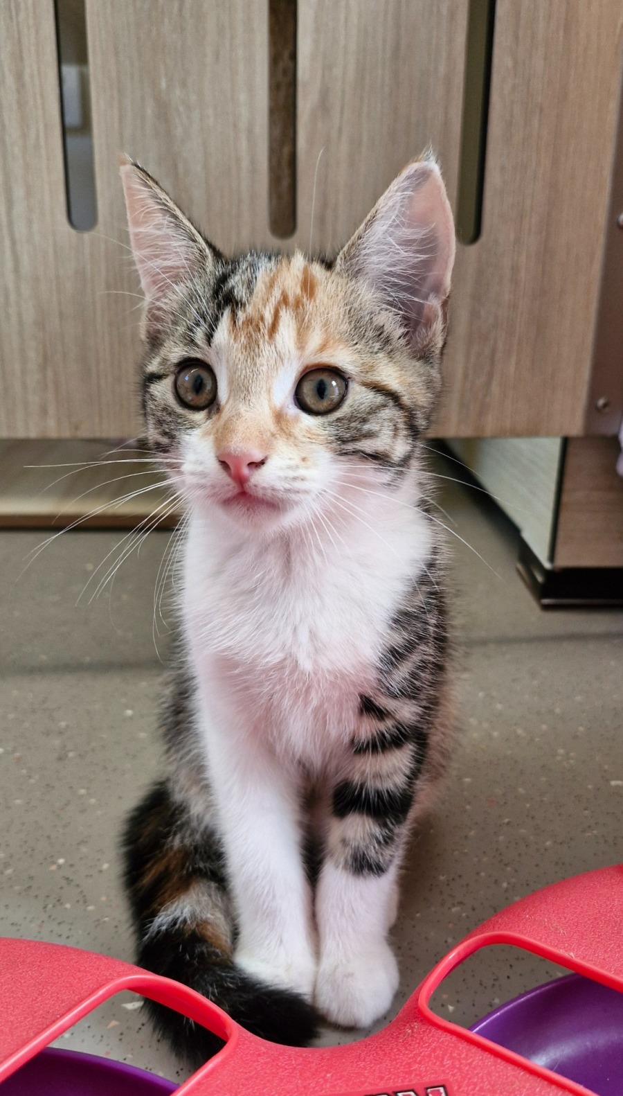 As a young kitten, Kyrah has a naturally curious and energetic disposition, always eager to explore her surroundings. Her youthful zest and adventurous spirit promise endless entertainment for those fortunate enough to welcome her into their home. Whether she's chasing a ball of yarn or embarking on a mini-adventure around the house, Kyrah's lively personality and boundless energy are infectious.