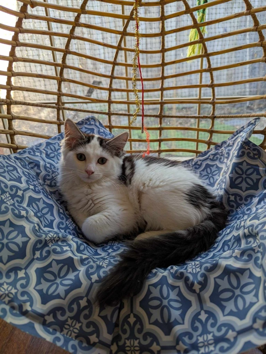 Though she may start out a bit shy, Mirage quickly warms up with a few gentle scratches behind her ears, transforming into an endearing bundle of love. She especially loves boys, often offering a little wiggle of excitement in their presence, and she’s happiest when surrounded by the soothing company of her siblings. Because of her social personality, Mirage would thrive in a home with another feline friend who can share in her playful antics and keep her company.