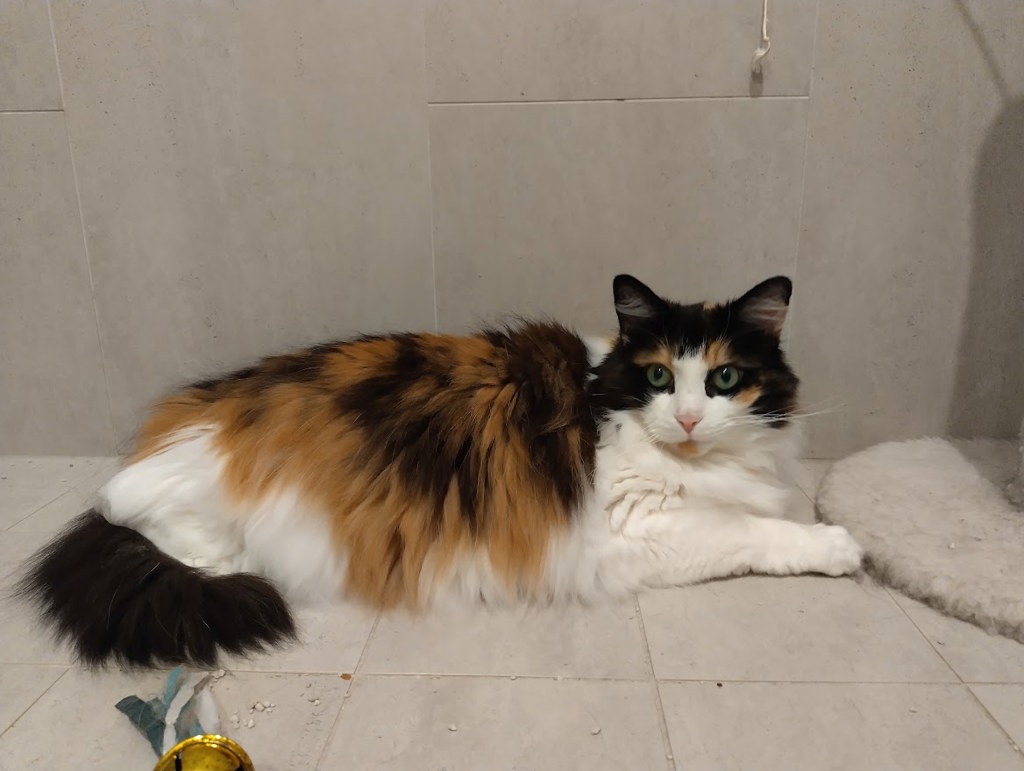 She's not one to rush into things, but she's full of love and curiosity. Slow blinks and soft words go a long way with Meeko, she'll even trot across the room for a cuddle once she feels secure. Her favourite spot is right beside you, looking into your eyes lovingly like you're the most important person in the world. soaking in all the gentle affection she's grown to adore.