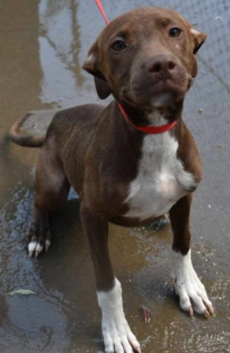 We believe her to be a staffy x who is wonderful with other dogs, not tested with cats or children.