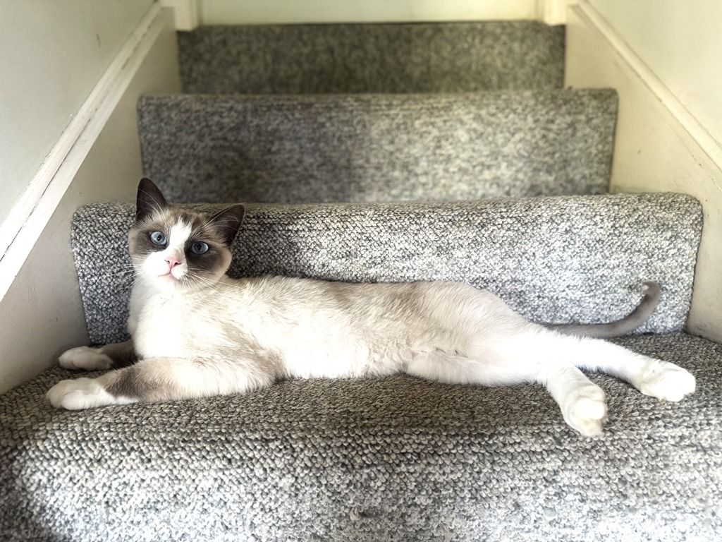 Blue usually has a big fluffy coat but has recently had a haircut at the vets due to ticks. Though he is primarily an inside cat he is quite an escape artist and does like to shoot out the door when given a chance and the two times he has done this at his coastal home, he has picked up a tick and become very sick.
