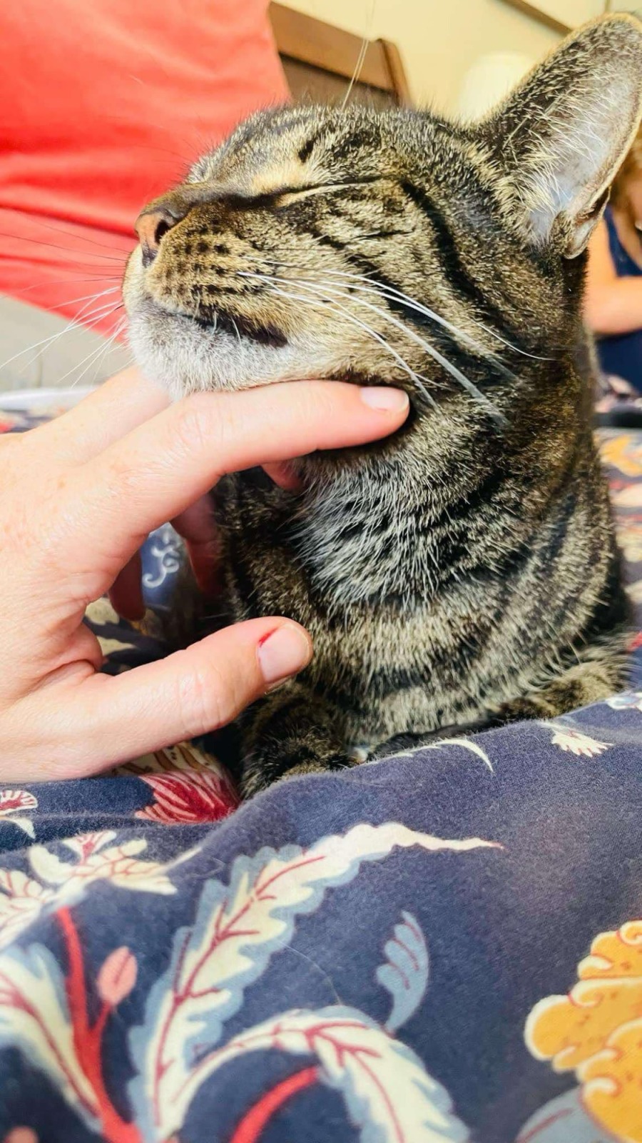 Meet Boots, affectionately known as Bootsy McWiggin, a sweet and charming feline companion ready to find a new family. With his stunning dark tabby coat and captivating green eyes, Boots is not only a beauty to behold but also the affectionate partner you've been looking for. He has spent the past five years as an adored family member, building friendships with two canine companions along the way. However, Boots has a preference for a tranquil and laid-back environment where he can truly bask in serenity.