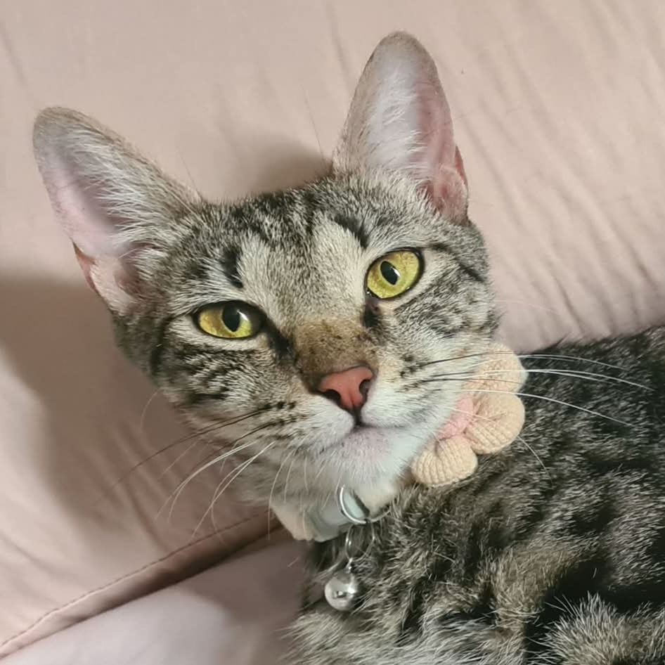 Goldie is a smoochy Mama with a heart of gold. Goldie came into care with her best friend Meadow by her side and 4 kittens whom they raised together. Goldie enjoys food, watching the scenery through the window, a good cuddle and doing zoomies. She's an adventurous girl who loves to climb.