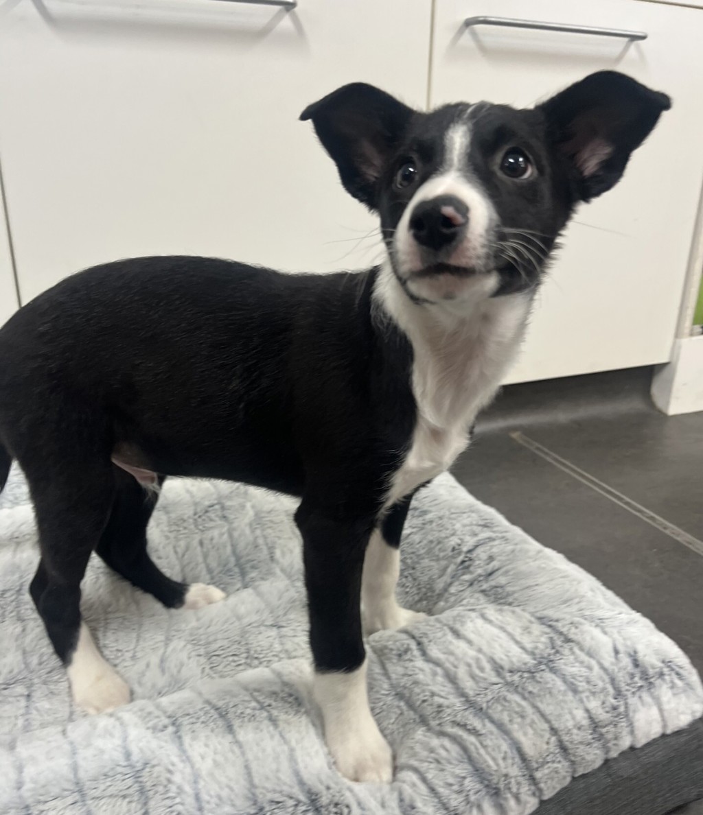 Eros is a sweet, food-motivated puppy who came into our care with his three littermates. While he's the most reserved of the bunch, he quickly finds his confidence with patience and support. Eros is eager to learn but has had little socialization, so he'll thrive in a home that offers ongoing training, positive experiences, and a calm, confident canine companion to help him navigate the world. A secure yard will be essential as he works on his walking skills, and puppy school is highly recommended to help him grow into a well-rounded, confident adult dog. Eros is looking for a patient, supportive family ready to help him become his best self!