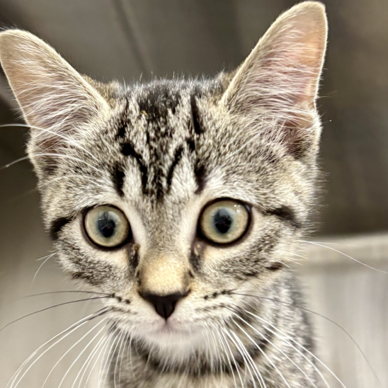 My name is Ezra and I am a playful, bouncy, 2-month-old Domestic Short Hair kitten.