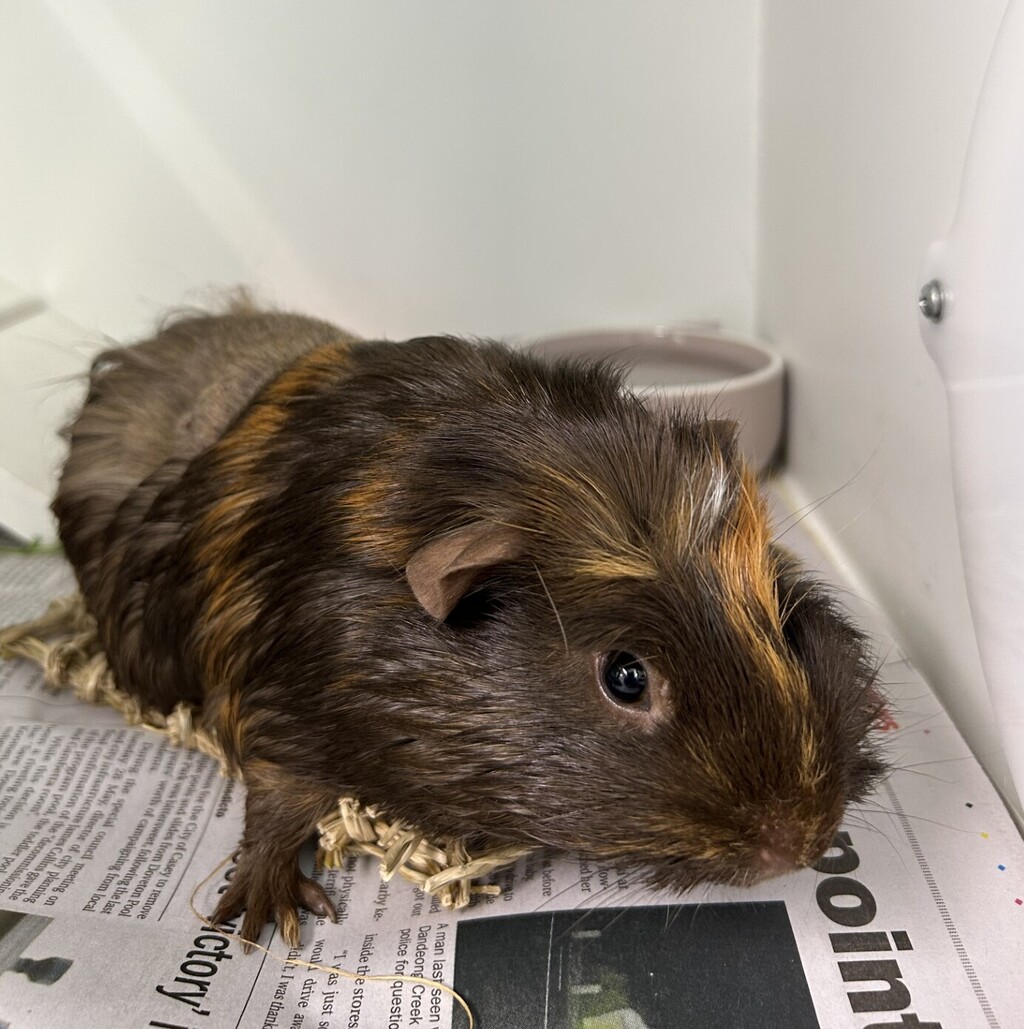 Sage is a sweet female Guinea pig looking for a nurturing owner who can help her explore the big wide world. She thrives in an environment filled with enrichment and would benefit from plenty of activities to keep her engaged. Sage would be happiest in a home with another Guinea pig for companionship, as she loves having a friend by her side.