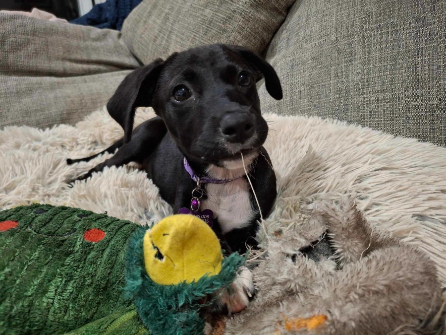 Our spirited Bella made her grand entrance to The Village via the rapid cardboard conveyance system originating from the far reaches of Rural Poundia. She, along with her siblings Lucy and Billy, were bravely embarking on a new journey following a less-than-ideal start. Despite her humble beginnings, Bella has quickly blossomed into a radiant star within our Puppyhood Program.