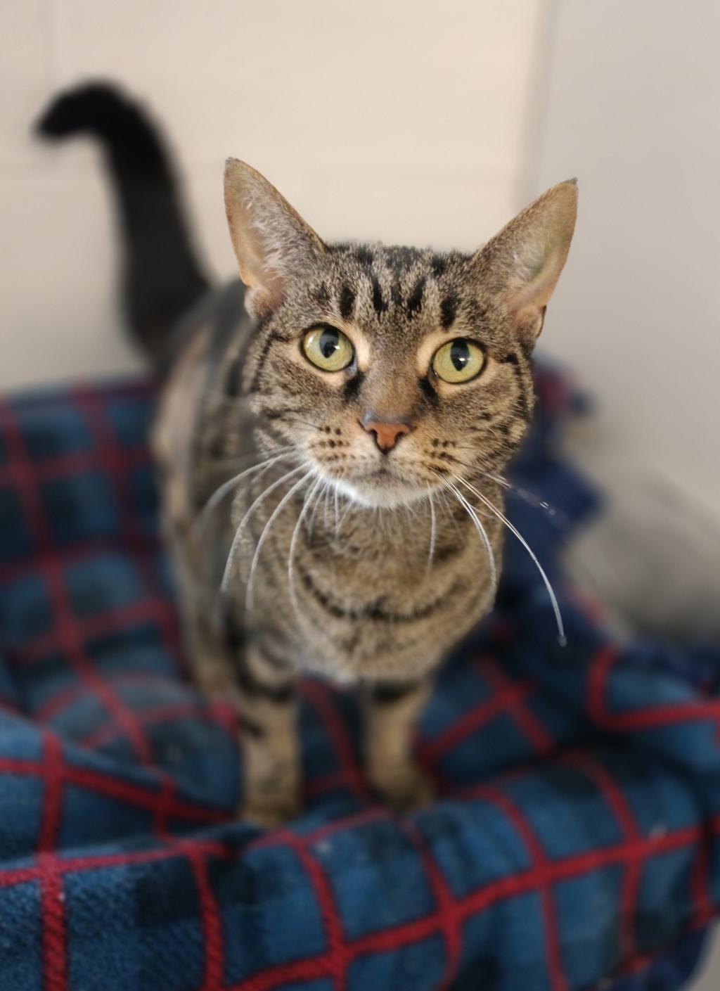 Rakia is a 7-year-old tabby with a perfect blend of friendliness and independence. She enjoys spending time with her humans but also knows how to entertain herself and appreciate some quiet time. Her calm yet engaging personality makes her an ideal companion for someone looking for a balanced cat who appreciates affection but isn't overly demanding.