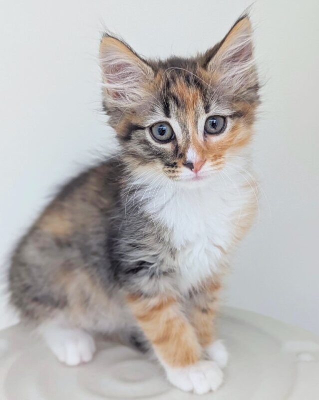 Hello, potential new family! My name is Floof, and as you might have guessed, I'm a fluffy little ball of love. I am a 2-month-old female kitten with a beautiful coat of Domestic Medium Hair. I'm the perfect blend of playful and chill - I love a good play session, but I also love to snuggle up for a nap. I'm still a baby, so I have a lot of growing and learning to do. I can't wait to learn all about my new family and their routines! I would love a family who can teach me about the world and all the fun things it has to offer. Just a note, I don't have any issues with children. I think they could be great playmates for me! I promise to be gentle and kind. I can't wait to meet you. I'm ready to find my forever home. Will it be with you? I sure hope so! Can't wait for our purr-fect life together!
