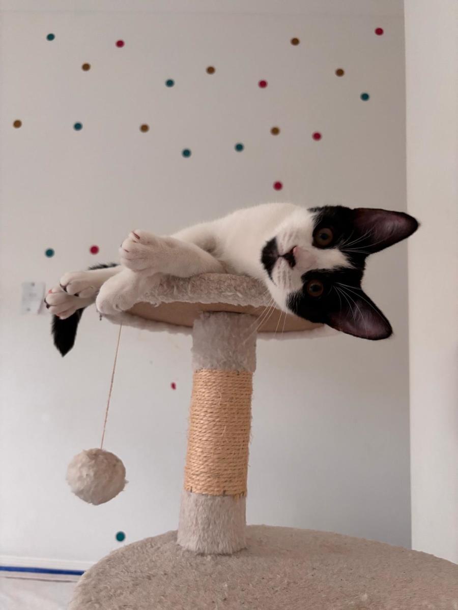 Meet Francis, a playful and cheeky black-and-white female kitten ready to steal your heart!