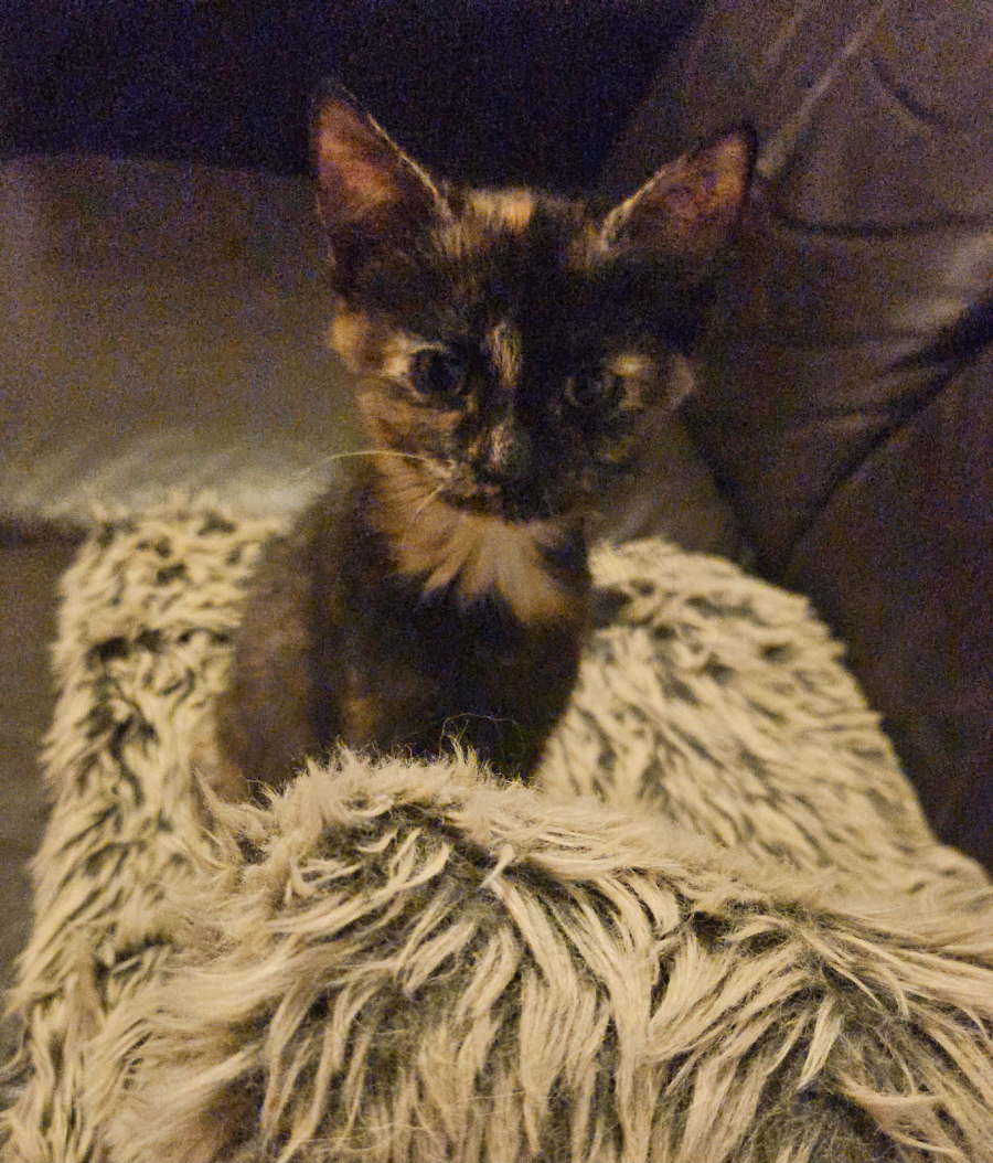 Pumpkin has had time with other kittens around the same age, she is happy to be with them and play. She does go and find somewhere to sleep by herself though. Pumpkin loves to have smooches with dogs, in her previous carers place she often chased their dog to play. She is small, so needs to be supervised around other pets.