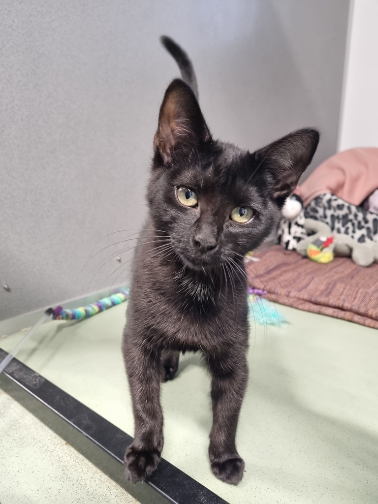 Hey there, I'm Newman, a 5-month-old kitten with tons of personality! I'm a very forward and confident little man, and I'll definitely let you know what's on my mind-especially when it comes to playtime! I'm super vocal and love to chat with my humans (and anyone who will listen!). I'm also extremely cat social, so I'd thrive in a home with another playful, energetic kitty. I'll love having a crazy friend to run and wrestle with-it's like a built-in playdate, all the time!