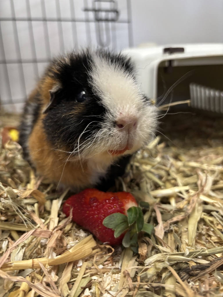 Hello, I'm Sabel Seafox, a guinea pig with a big heart. Life in the shelter is fine, but I yearn for a home where I can explore and play. I love the rustling of a fresh bag of hay and the crunch of a crisp carrot. My squeaks are a language of their own, expressing joy, curiosity, or just a simple 'hello'. I'm quite the conversationalist, you see. I've got a lot of love to give and I'm ready to share it with a family who'll love me back. Adopt me, and let's embark on a beautiful journey together.