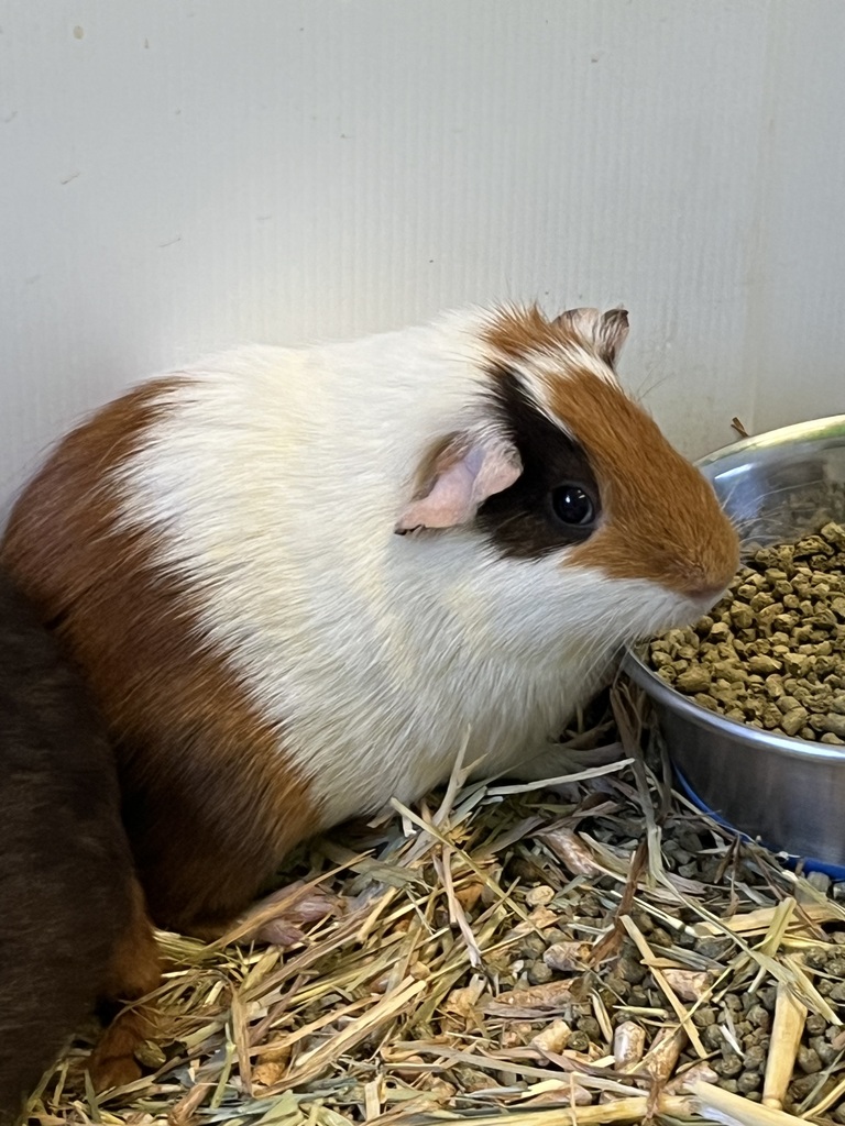 Hello, I'm Scarlette, a guinea pig with a big heart. I love to eat veggies, especially crunchy carrots. I'm a chatterbox and love to make cute noises when I'm happy. I'm very social and love to be held and petted. I'm also smart and can learn tricks. I love to play hide and seek in my cage, and I always win! I'm a bundle of joy and would love to bring happiness to a loving family. Adopt me, and I promise to fill your life with laughter and love.