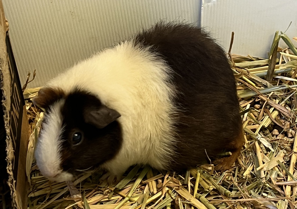 Hello there, I'm Valentina, your potential new best friend! Life here at the shelter is comfortable, but I dream of a home where I can explore, munch on fresh veggies, and squeak to my heart's content. I'm a social creature, so I wouldn't mind sharing my space with another guinea pig. I'm known for my friendly demeanor and curious nature. I love to interact with humans, and I'm always up for a good cuddle. Adopting me would mean endless companionship and joy. After all, who can resist the charm of a guinea pig?